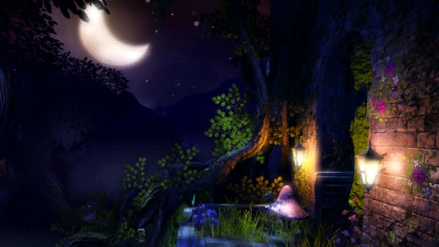 The level starts at twilight by a stream in the mountain forest, just outside the Astral Academy.