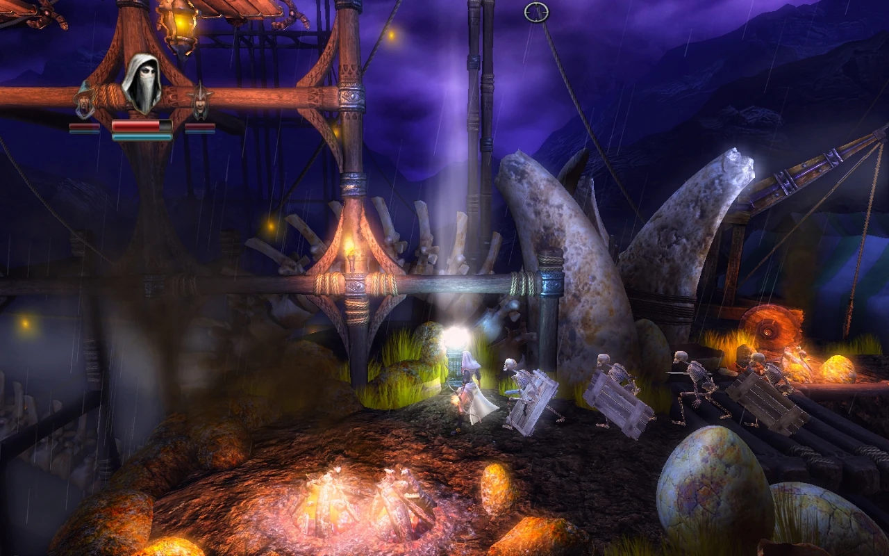 The Shield Skeletons are vulnerable to a complete range of counter attacks. Zoya (the Thief) and Pontius (the Knight) are the best heroes when dealing with these enemies. Pontius using the Storm Hammer makes quick work of killing this type of Skeleton. Amadeus (the Wizard) can drop objects on this type of Skeleton causing injury and often death. They are easier to defeat when their shield has been knocked from their grasp.